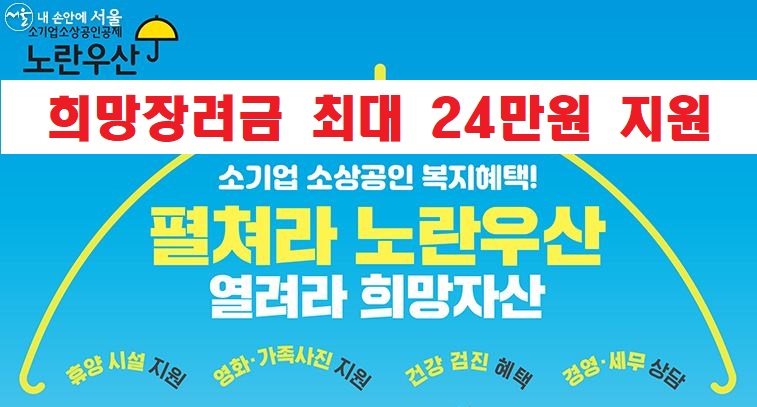 서울시에서 희망장려금이란 이름을 영세 소상공인이 노란우산공제에 가입할 경우 남입금을 1년간 최대 24만원 지원합니다.
